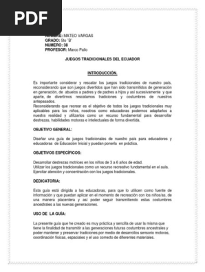 Es importante considerar y rescatar los juegos tradicionales de nuestro país, reconsiderando que son juegos divertidos que han sido transmitidos de generación en generación. Los juegos de patio son los juegos infantiles clásicos , que se realizan sin. Los juegos tradicionales retornan a quito ministerio de turismo. Copyright documents similar to juegos tradicionales del ecuador. Pero sí enlistaremos los más populares